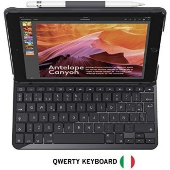 Custodia nera per iPad 5ª/6ª generazione con tastiera Bluetooth QWERTY italiano, 14 tasti rapidi iOS e supporto dock. Design compatto di 182 mm, p ...