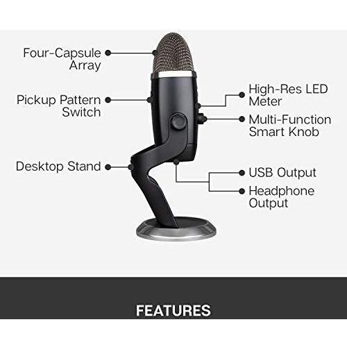Blue Microphones Yeti X verticale Microfono per PC Tipo di trasmissione (dettaglio):Cablato, USB USB, Cuffie (jack da 3,5 mm) Cablato, USB Nero