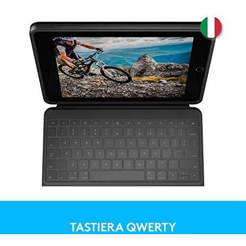 Logitech Rugged Folio per iPad (7ª, 8ª e 9ª generazione) Custodia con tastiera protettiva con Smart Connector e tastiera resistente agli schizzi, Layout Italiano QWERTY - Nero