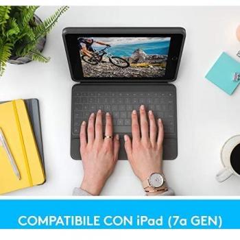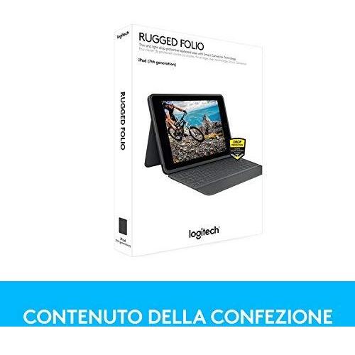 Logitech rugged folio ipad (7a generazione) custodia con tastiera protettiva con smart connector e tastiera resistente agli schizzi colore graphite