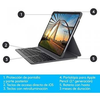 Custodia Logitech Slim Folio Pro con tastiera Bluetooth retroilluminata per iPad Pro 11" (1a e 2a generazione) - Colore Grigio