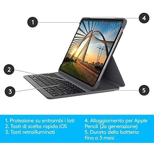 Logitech Slim Folio Pro - Custodia bluetooth con tastiera retroilluminata italiana per iPad Pro da 12,9" (3a e 4a generazione, modelli: A1876/A2014/A1895/A1983/A2293/A2233), layout qwerty