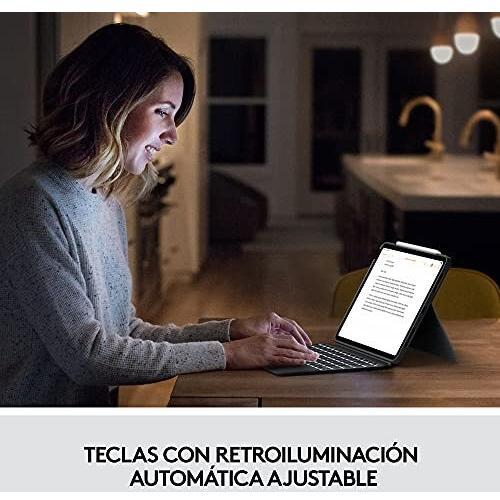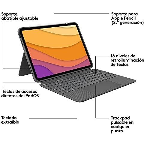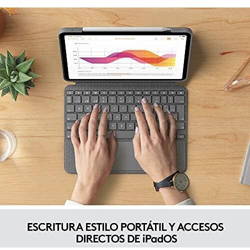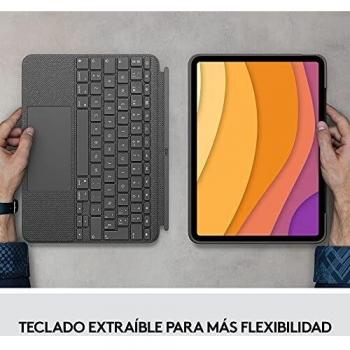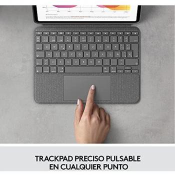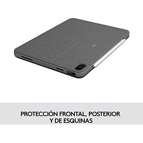 Custodia multifunzione per iPad Air 4ª/5ª generazione in grigio Oxford, con tastiera QWERTY spagnolo e trackpad nascosto. Il Smart Connector facilit ...
