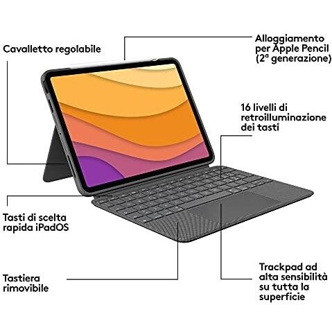 Logitech Combo Touch Keyboard Case for iPad Air (4th Gen - 2020) - Backlit Removable Keyboard, Click-Anywhere Trackpad, Smart Connector, Italian QWERTY Layout - Gray