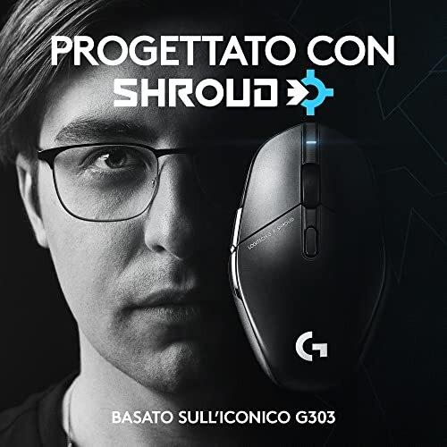 Logitech G G303 Shroud Edition Wireless Gaming Mouse - LIGHTSPEED Technology - HERO 25K Sensor - 25,600 DPI - 75g Lightweight - 5 Programmable Buttons - Black