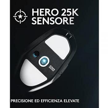 Mouse da gaming leggero e reattivo, con sensore HERO 25K che offre fino a 25 600 DPI per precisione estrema. Il design ergonomico in nero è dotato ...
