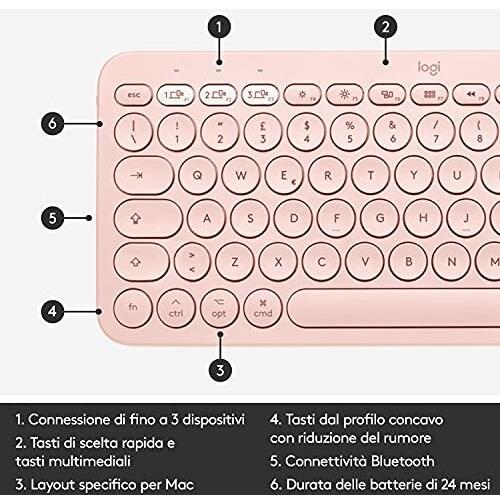 Logitech k380 per mac tastiera bluetooth qwerty italiano rosa