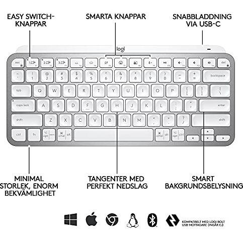 Tastiera wireless con illuminazione Logitech MX Keys Mini in Pale Gray, Danese/Norvegese/Svedese/Finlandese (QWERTY)