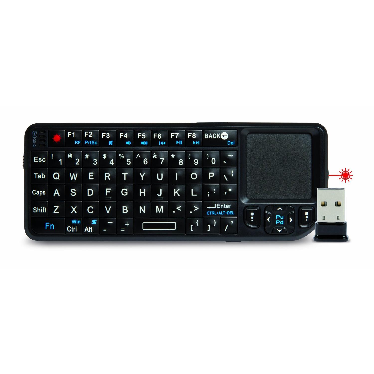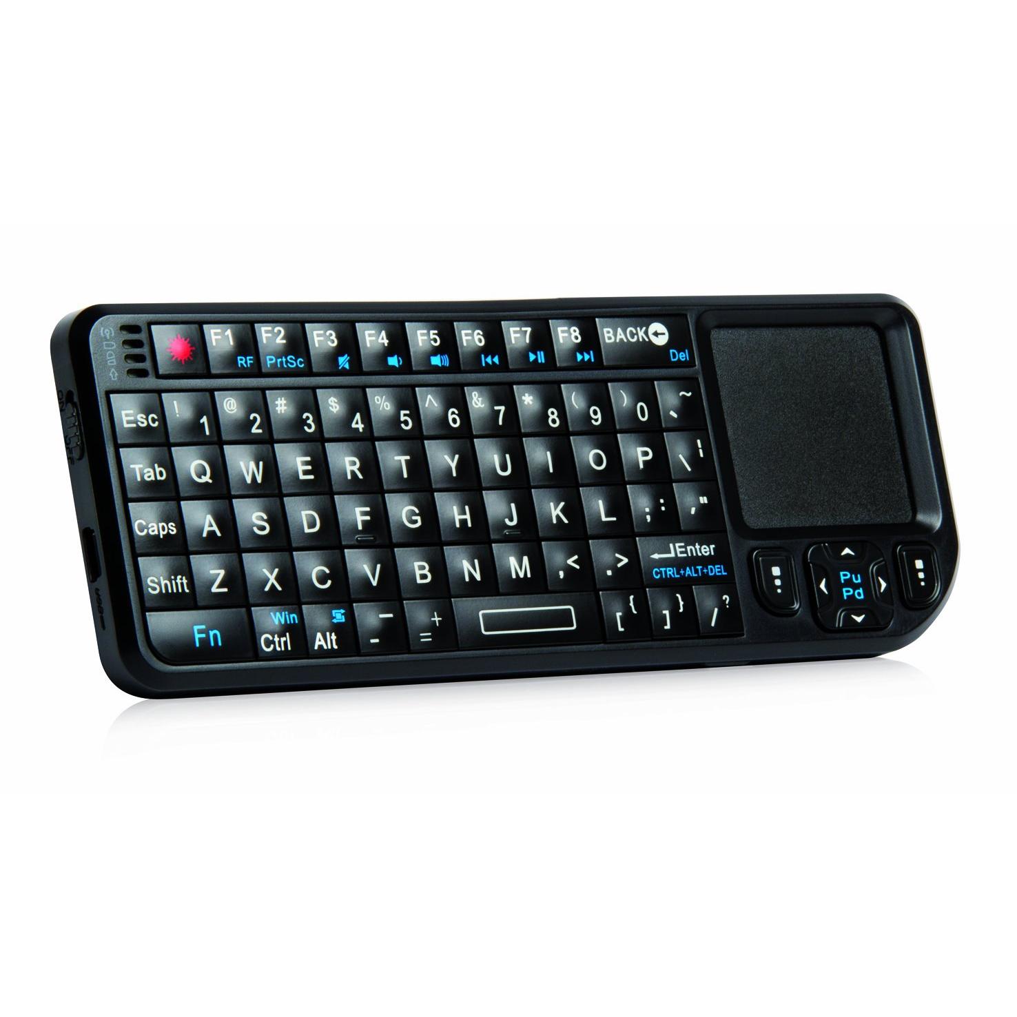 Tastiera compatta con touchpad e puntatore laser integrato, perfetta per TV smart, proiettori e laptop. Design sottile di 12,5 mm, retroilluminazion ...