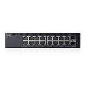 Switch Dell X1018 in rack 1U con 16 porte Gigabit RJ‑45 e 2 SFP, capacità di commutazione 36 Gb/s, buffer 1 MB, supporto VLAN fino a 4096, QoS, ...