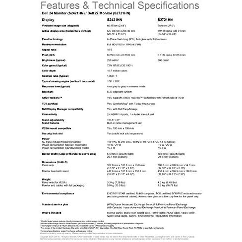 Dell - 5397184409336 - B08GGF4L1K - S2421HN - Si - Nero - 12.2 W - 0.2 W - 12 kWh - 23.8" - Piatto - No - Business - 16:9 - 1000:1 - 1920x1080 - LCD - ...