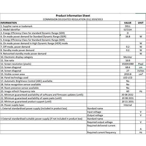 Dell - 5397184409367 - B08GGCQCCB - S2721H - 27.0" - 16:9 - 1920x1080 - IPS