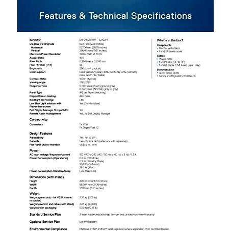 DELL - DISPLAY B2B - 5397184567661 - B09J1FRLDD - DELL-E2422H - Yes - 33,2 cm - ENERGY STAR, EPEAT Gold - Sync-on-green (SOG) - 16 kWh - 28 W - Nero - ...