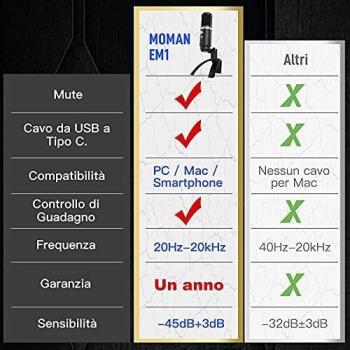 Microfono Moman EM1 Condensatore USB per PC