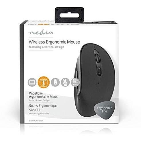Nedis - Mouse Ergonomico Senza Fili Per Destrorsi A 1600 Dpi Con 6 Pulsanti, Nero