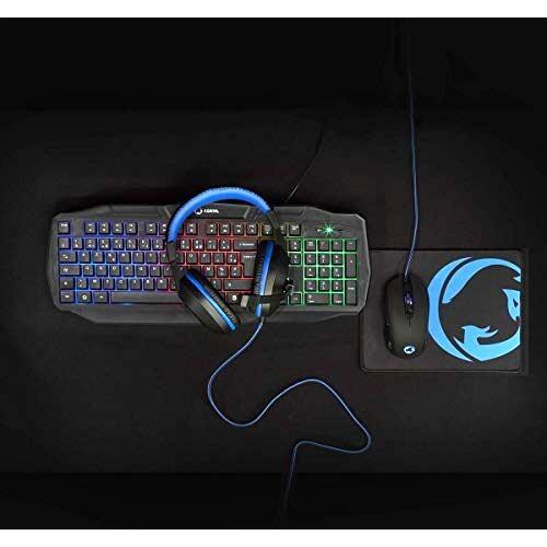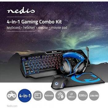 NEDIS Kit Combo di Gioco - Tastiera, Cuffia, Mouse e Tappetino per Mouse - 5V 0.5A - Destrorsi - 6 Pulsanti - Sistema Operativo Windows - USB - 1200/1600/2000/3200 dpi AZERTY FR Layout