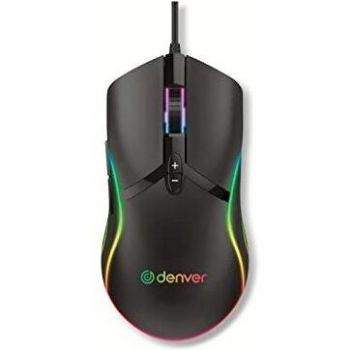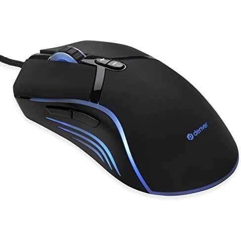 Denver GMO-402 Mouse da gioco USB Ottico Nero 7 Tasti 1000 dpi, 1600 dpi, 3200 dpi, 6400 dpi Illuminato