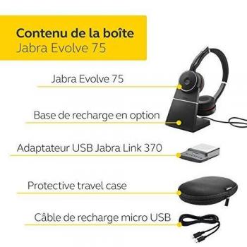 Jabra Evolve 75 UC Wireless Stereo Headphones, Certified UC Headphones with Long-Lasting Battery, USB Bluetooth Adapter, Black