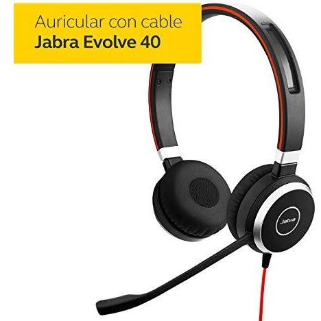 Jabra Evolve 40 Cuffie Stereo - Cuffie da Ufficio Certificate UC per Softphone VoIP - Funzione Passive Noise Cancellation - Cavo USB e Controller, Nere