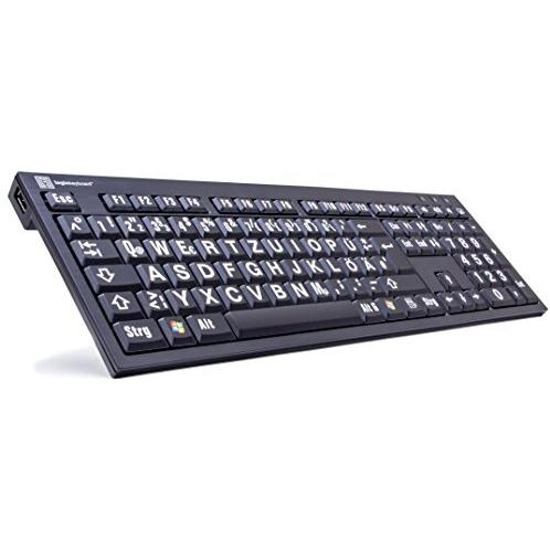 LogicKeyboard - XL Print, USB, QWERTZ, Cablato, Nero, 1,5 m, 2 pezzi