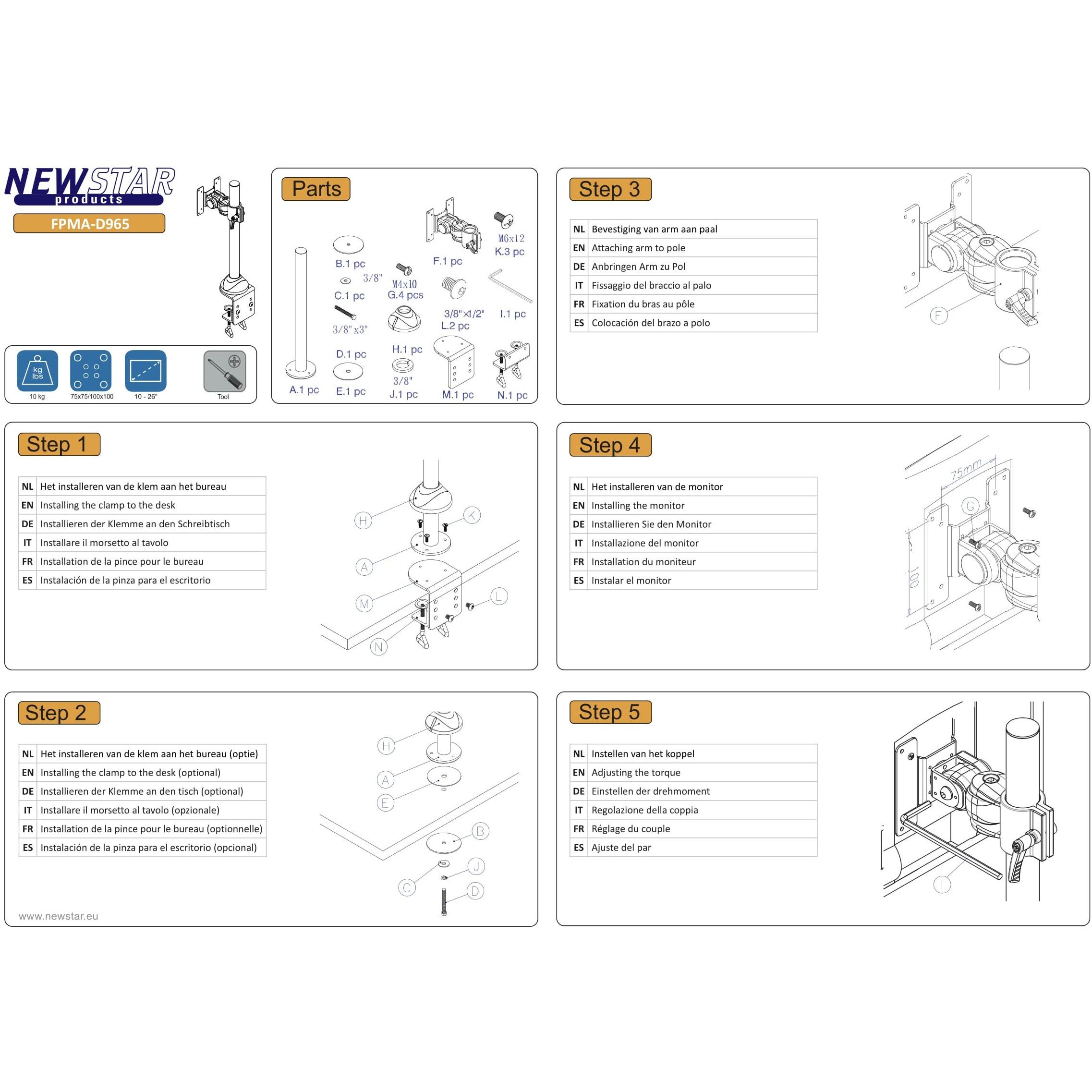 NEOMOUNTS - Supporto da Scrivania FPMA-D965 per Monitor LCD /LED /TFT
