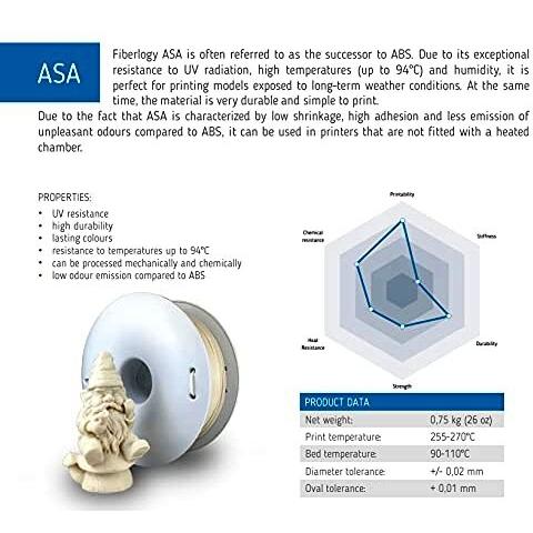 Fiberlogy ASA Gray, 1,75 mm (750 grammi)