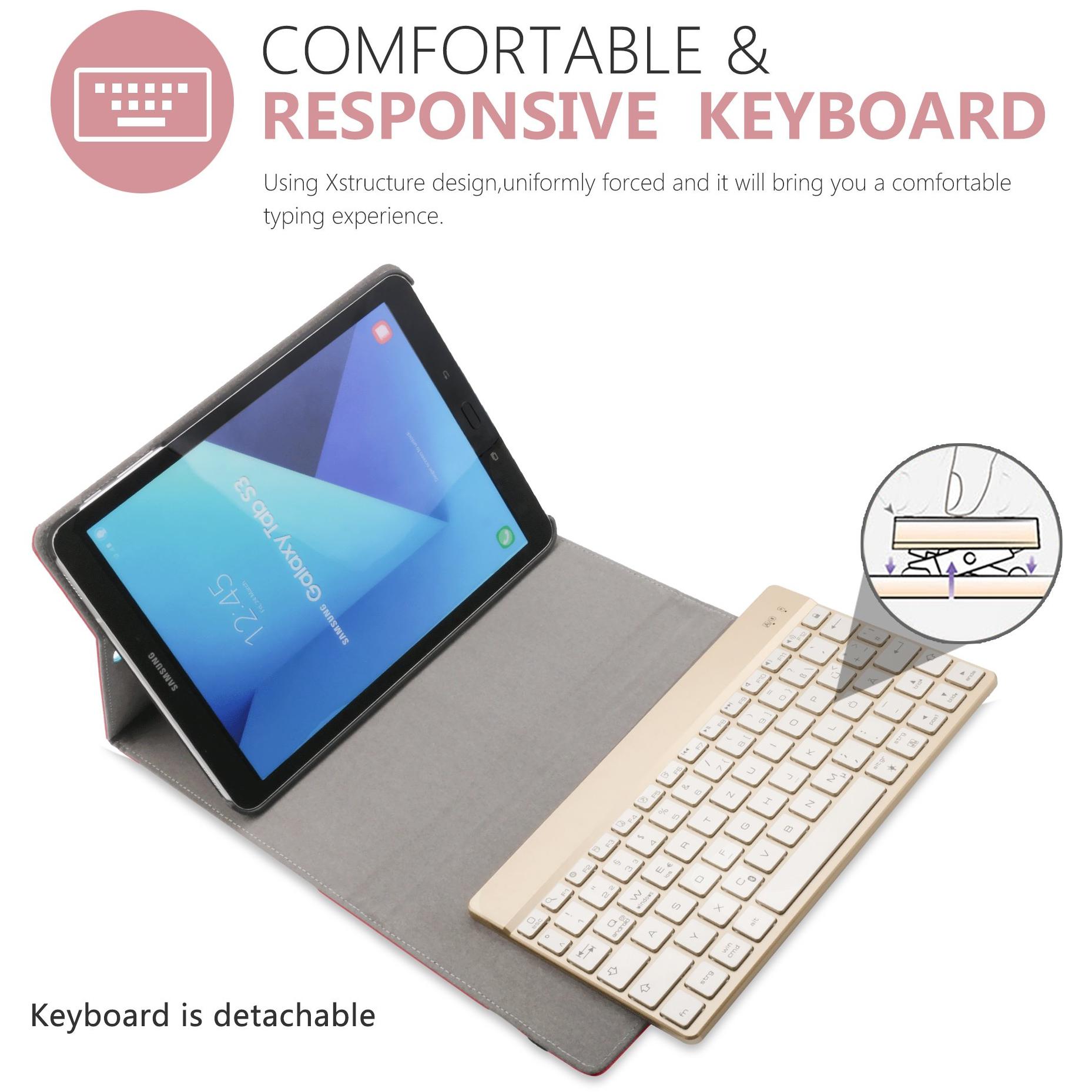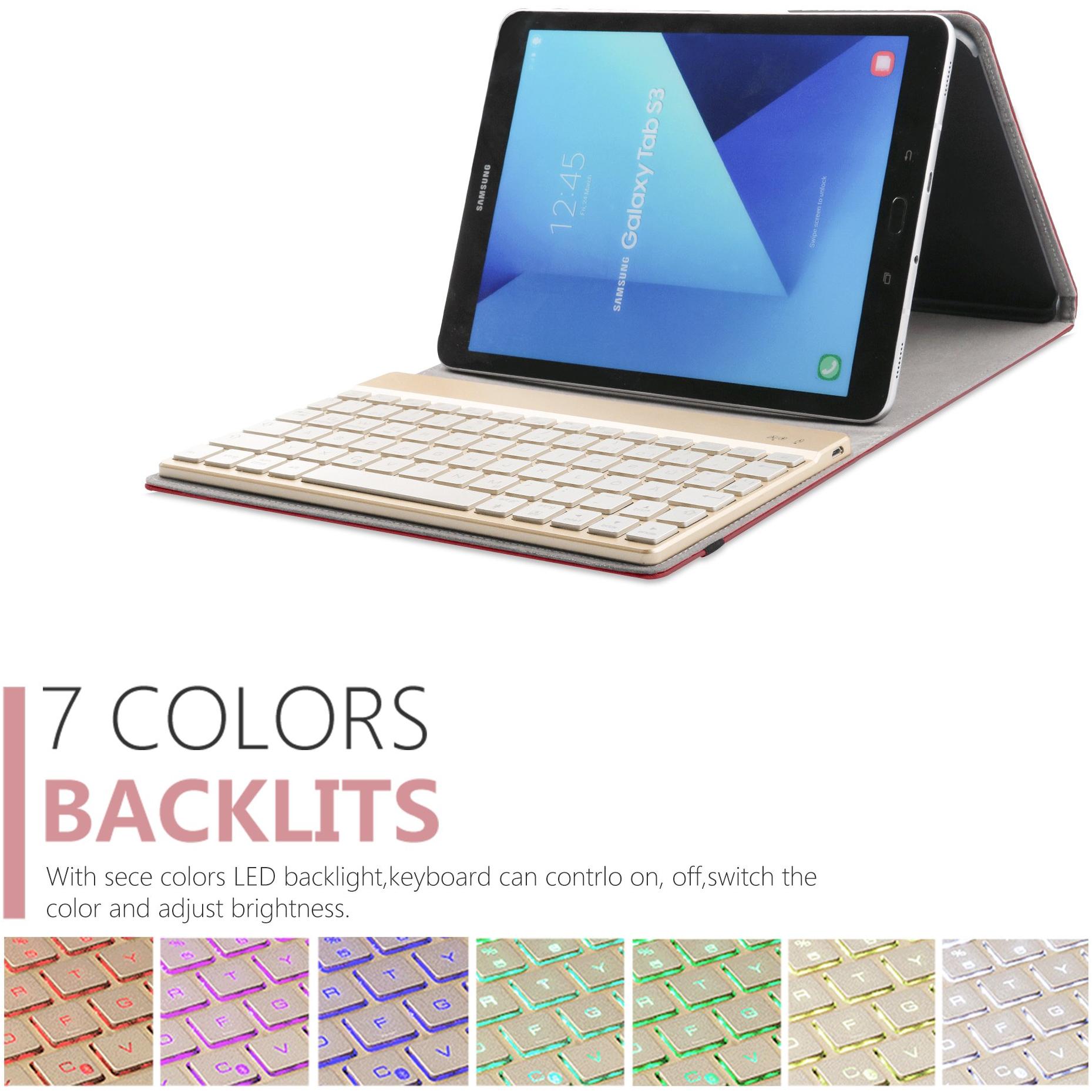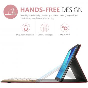 Protective Book-Style Case for Samsung Galaxy Tab A 10.1 (2016 versions, SM-T580/SM-T585), in synthetic leather, ultra-thin, with automatic "sleep/wake" function, integrated stand, detachable backlit aluminum Bluetooth keyboard
