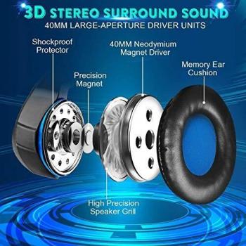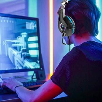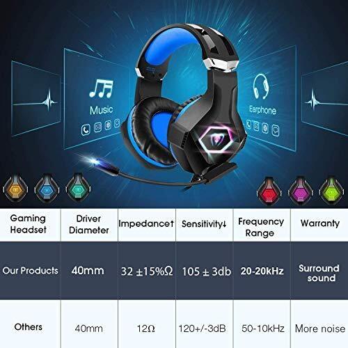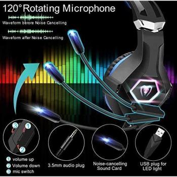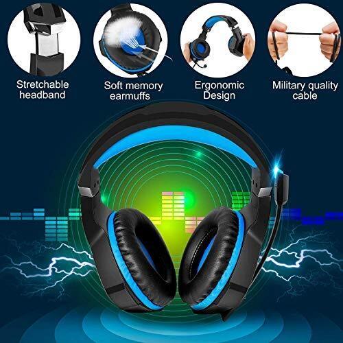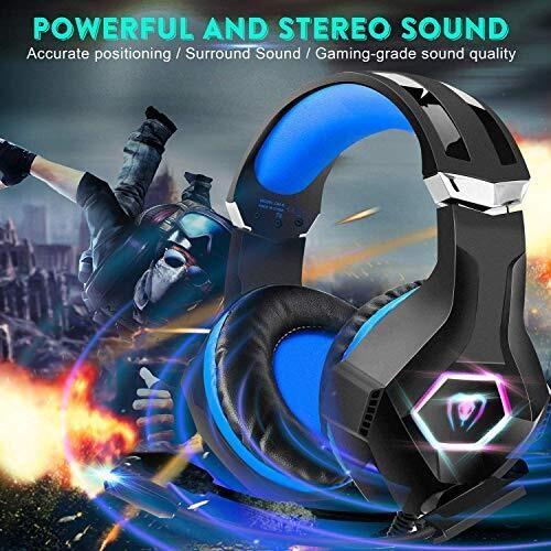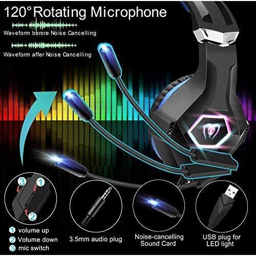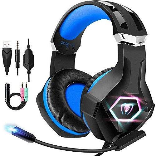 FISHOAKY PS4 Cuffie Gaming e Bass Stereo, Cuffie da Gioco con Mic a LED, 3,5mm Jack Game Headset con Cancellazione del Rumore e Controllo del Volume per PS4 Xbox One X/S Nintendo Switch PC (Blue)