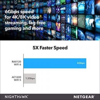 Netgear - 0606449134773 - B07NCS58BK - RAX120-100EUS - Dual-band (2.4 GHz/5 GHz) - Collegamento Ethernet LAN - Nero - 6000 Mbit/s - Porta USB - IEEE 8 ...