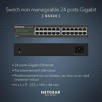 Netgear GS324 Switch Non Gestito Gigabit Ethernet 10-100-1000 Supporto Power Over Ethernet Nero