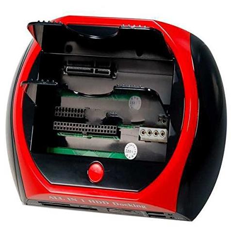 Docking Station 875J All-In-One dual SATA / IDE HDD con un pulsante di backup per 2.5 "/3.5" SATA / IDE HDD (nero + rosso)