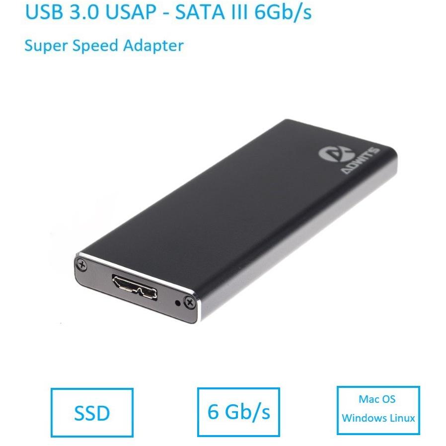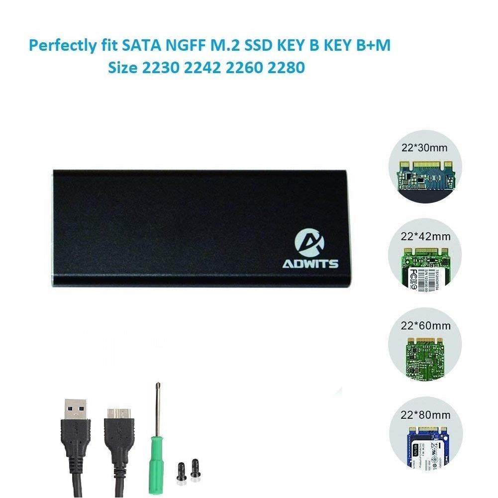 ADWITS USB 3.0 UASP a SATA M.2 2230/2242/2260/2280 Adattatore SuperSpeed Key B o B & M SSD, custodia esterna per SSD M.2 basato su SATA - Nero