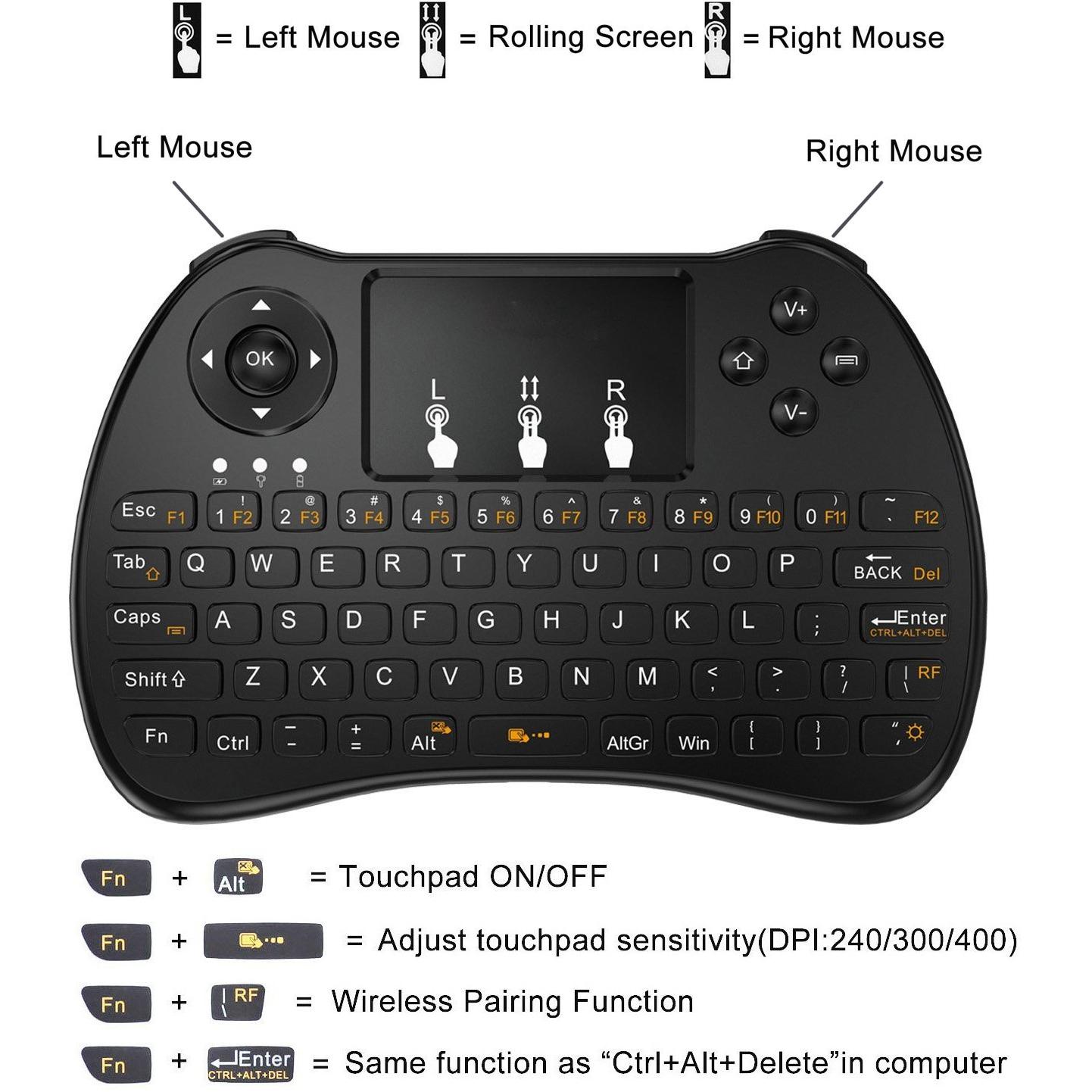 SEGURO® 2.4G Mini Touchpad Keyboard and Mouse for PC, Pad, Xbox 360, PS3, Google Android TV Box (Black)