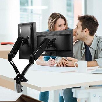 Supporto SBOX per due monitor 33–68 cm (13–27″) con molla a gas, VESA 75×75 e 100×100 – Nero