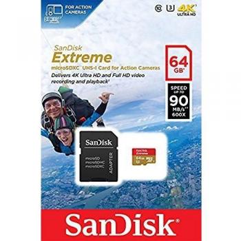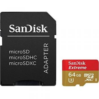 SanDisk Extreme Microsdxc U3/class 10 64gb + Adattatore Sd
