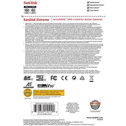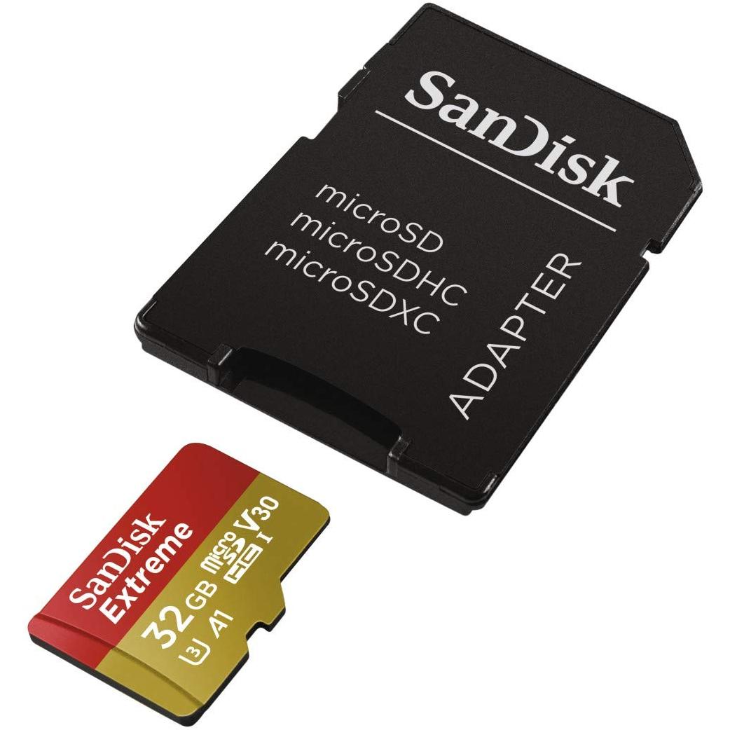 SanDisk Extreme microSDHC 32GB per Action Camera e Droni + Adattatore SD, Velocità di Lettura fino a 100 MB/s, A1 C10 V30 UHS-I U3