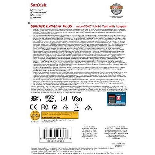 SanDisk Extreme Plus microSDXC 128 GB con adattatore SD e App Performance A2 e Rescue Pro Deluxe, classe 10, UHS-I, U3, V30