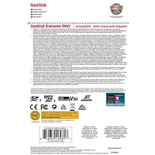 SanDisk Extreme Pro Scheda di Memoria microSDXC da 128 GB e Adattatore SD con App Performance A2 e Rescue Pro Deluxe, fino a 170/90 MB/sec, UHD 4K ready, Classe 10, UHS-I, U3, V30
