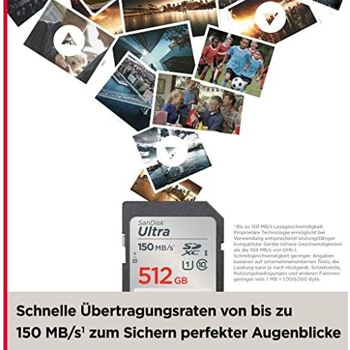 SanDisk SDXC Ultra 512GB (Class 10/UHS-I/150MB/s) Scheda SDXC 512 GB UHS-Class 1 impermeabile, antiurto