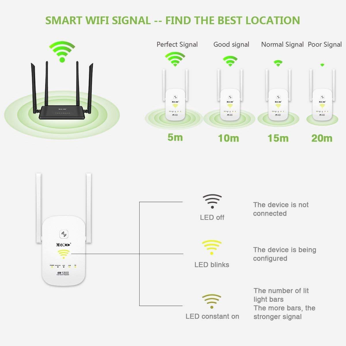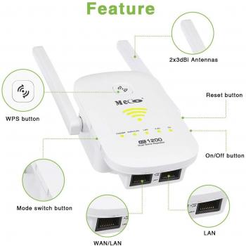 Meco Wireless Extender AC1200 – Range Booster Dual Band