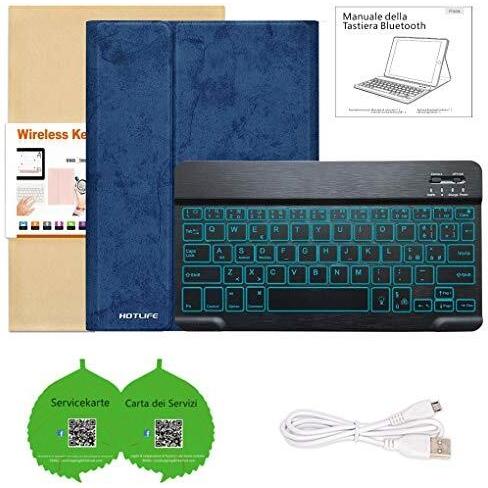 Custodia Tastiera iPad 9.7, Custodia iPad 2018 con Tastiera Italiano Retroilluminazione a 7 Colori Bluetooth per iPad 2018/iPad 2017/iPad pro 9.7/iPad Air 2/1 con Smart Auto Sleep-Wake (Blu scuro)
