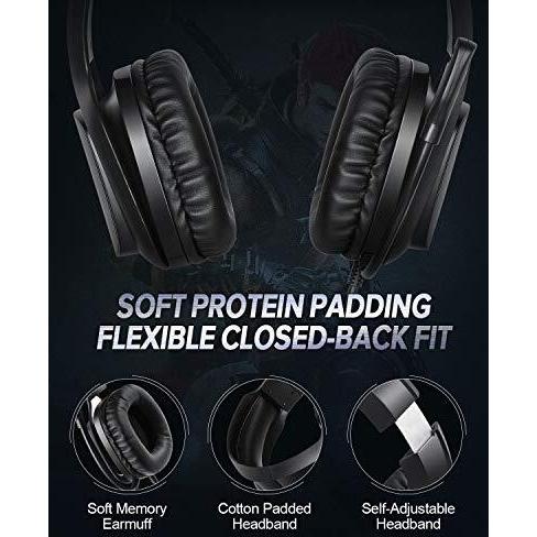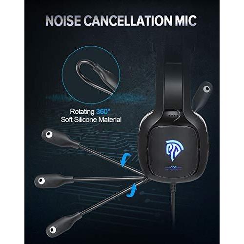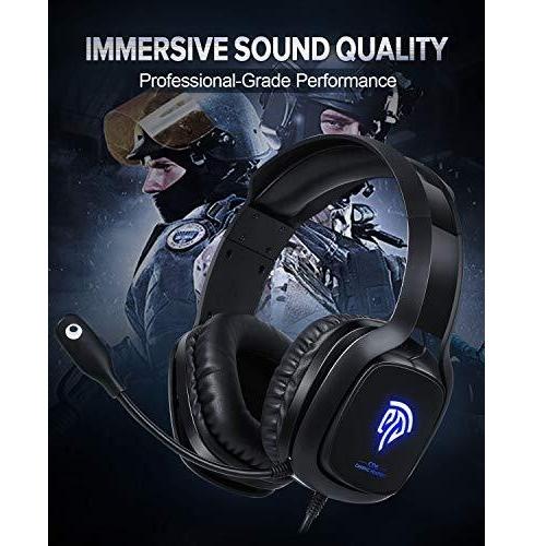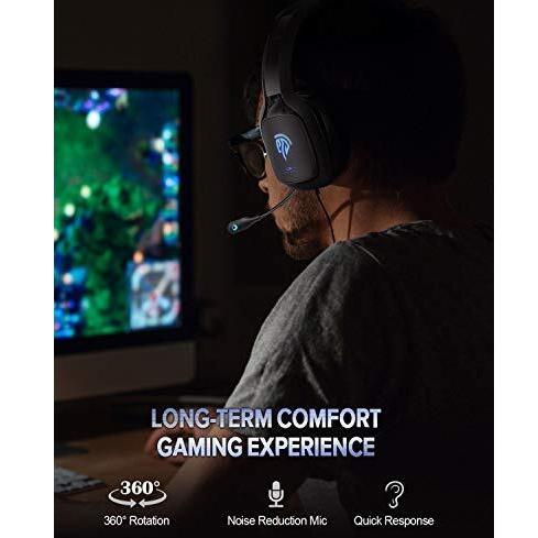 EasySMX Gaming Headset with Mic for PC, PS4, Xbox One, Switch, Wired Over-Ear USB Audio Cuffie con Microfono e Riduzione del Rumore, Illuminazione LED Blu, Compatibili con PC, Laptop, Tablet (Non Incluso Adattatore)