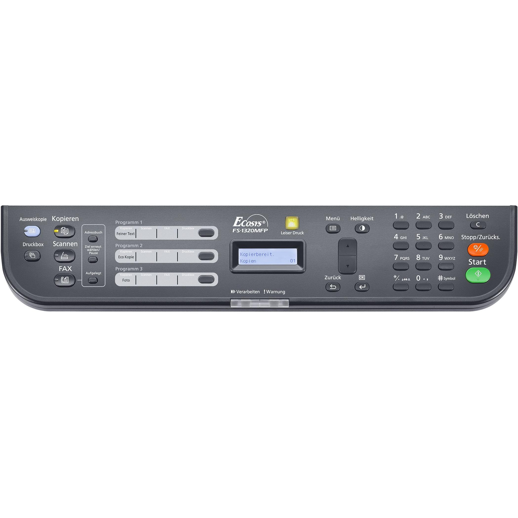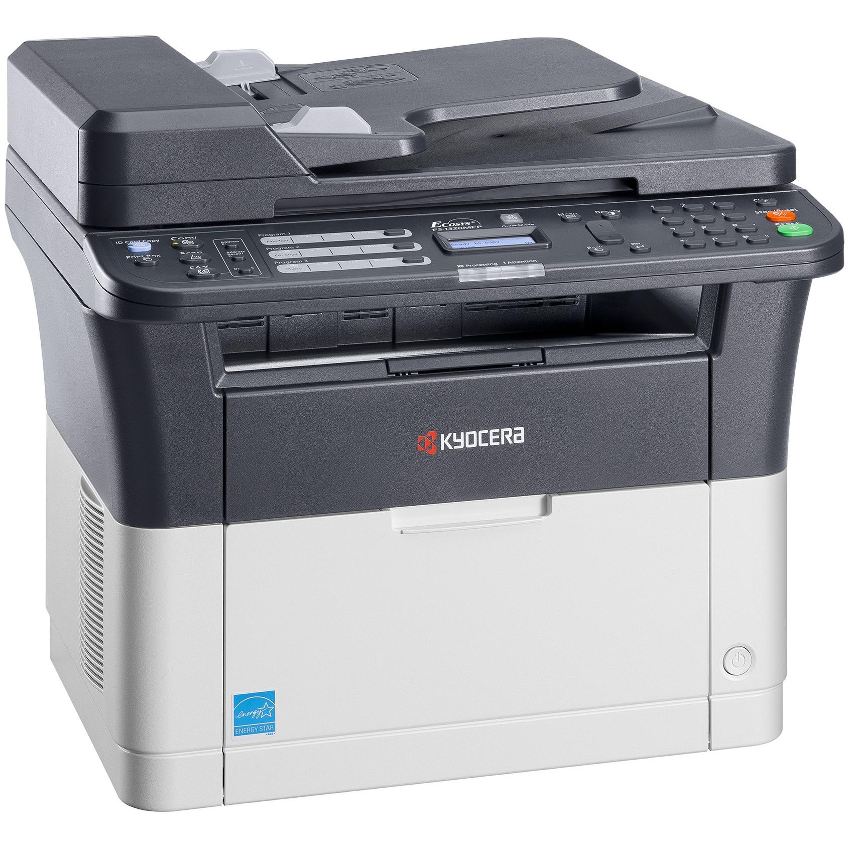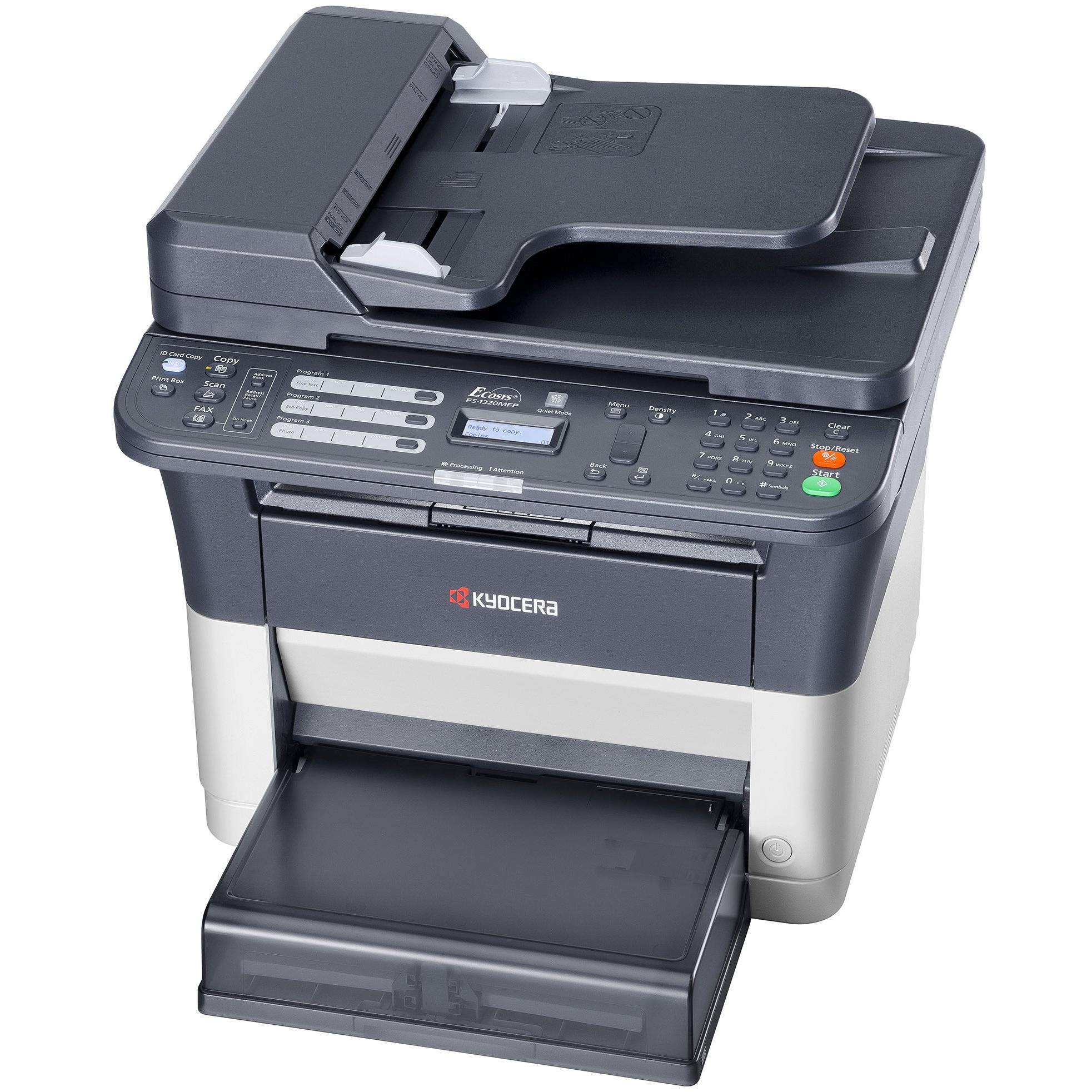Stampante laser Kyocera Ecosys FS‑1320MFP: multifunzione in bianco e nero con stampa, copia, scansione e fax a 20 pagine al minuto. Alimentatore aut ...