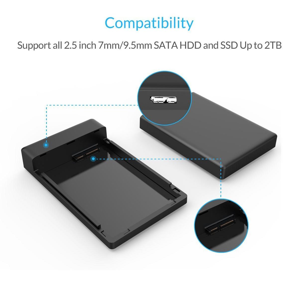 ORICO External Hard Disk Case SATA III SSD 2.5 Inch - USB 3.0 with UASP (Black)