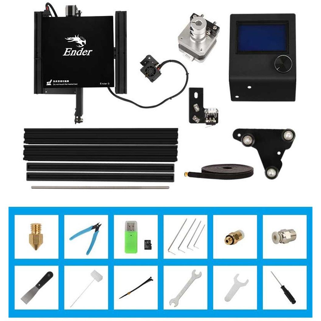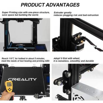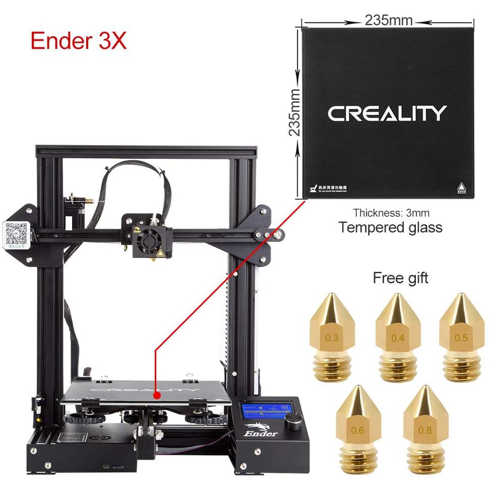 Stampante 3D Ender 3 di Comgrow, pronta all’uso con lastra in vetro temperato per adesione perfetta e facile rimozione. Cinque ugelli intercambiab ...