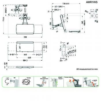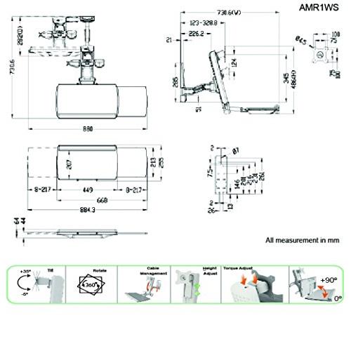 AMER NETWORKS AMR1WS, 75 x 75,100 x 100 mm, Bianco, 0 - 90°, 90 - 90°, -5 - 35°, Alluminio, Plastica, Acciaio