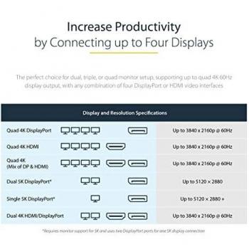 StarTech.com Docking Station USB C - Quad Monitor DisplayPort/HDMI 4K 60Hz