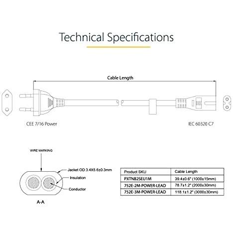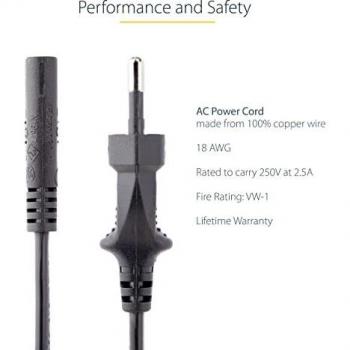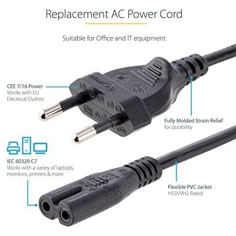 Cavo di alimentazione universale da 3 metri con spina europea e attacco C7, 2,5 A a 250 V e 18 AWG. Progettato come ricambio affidabile per notebook e ...