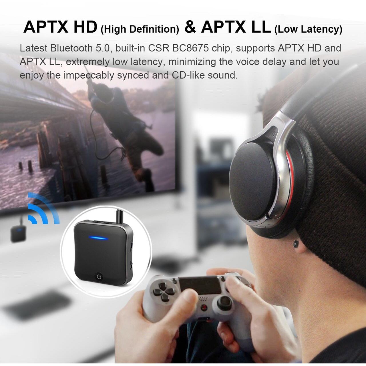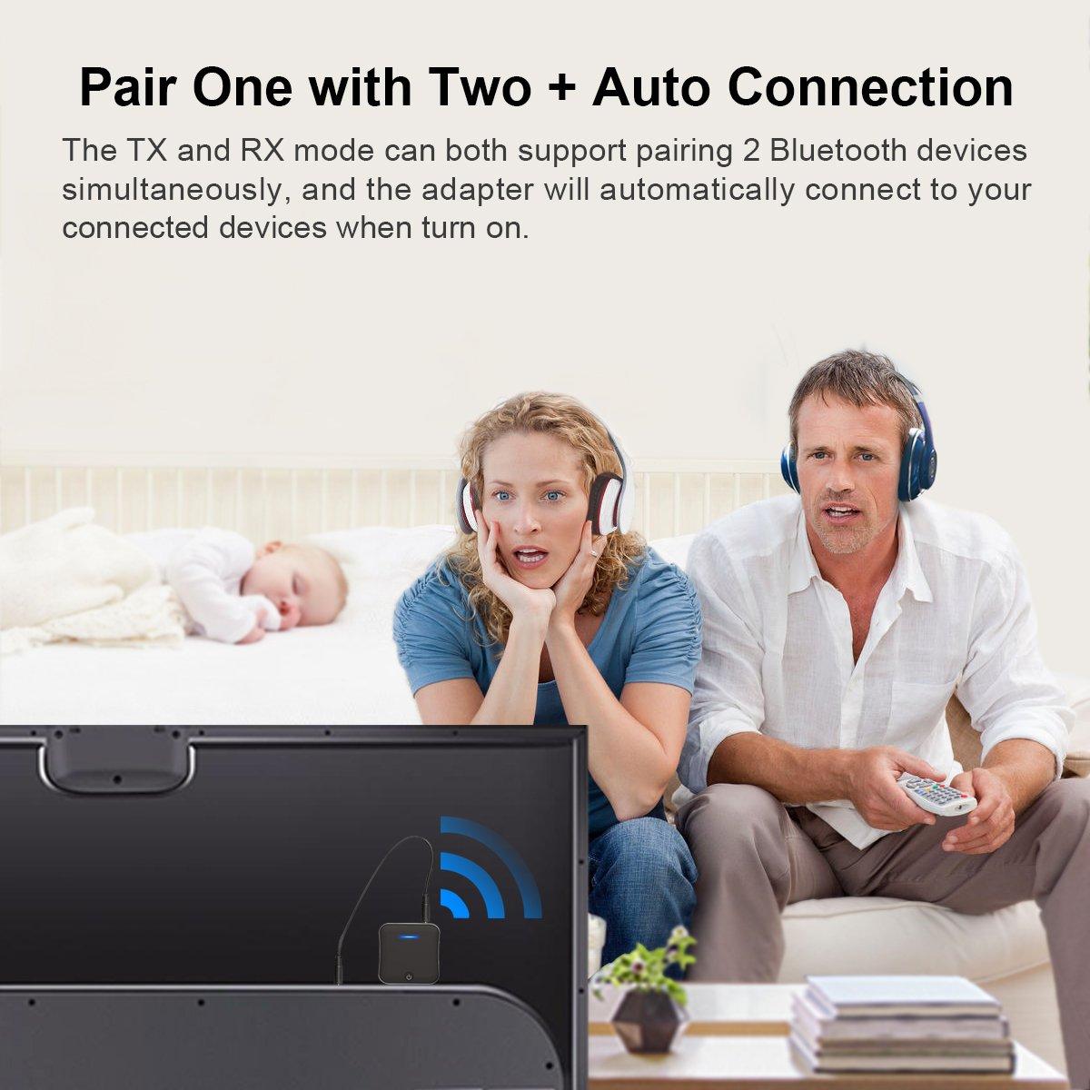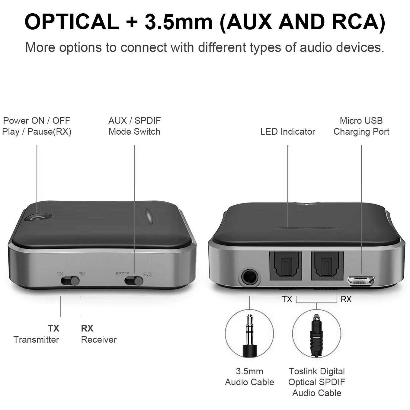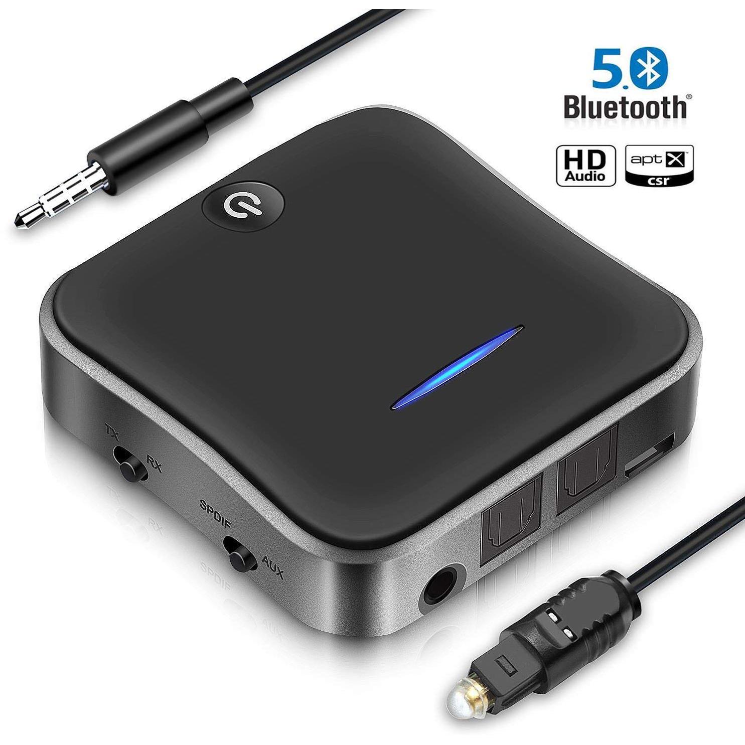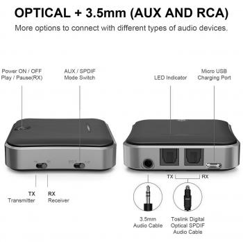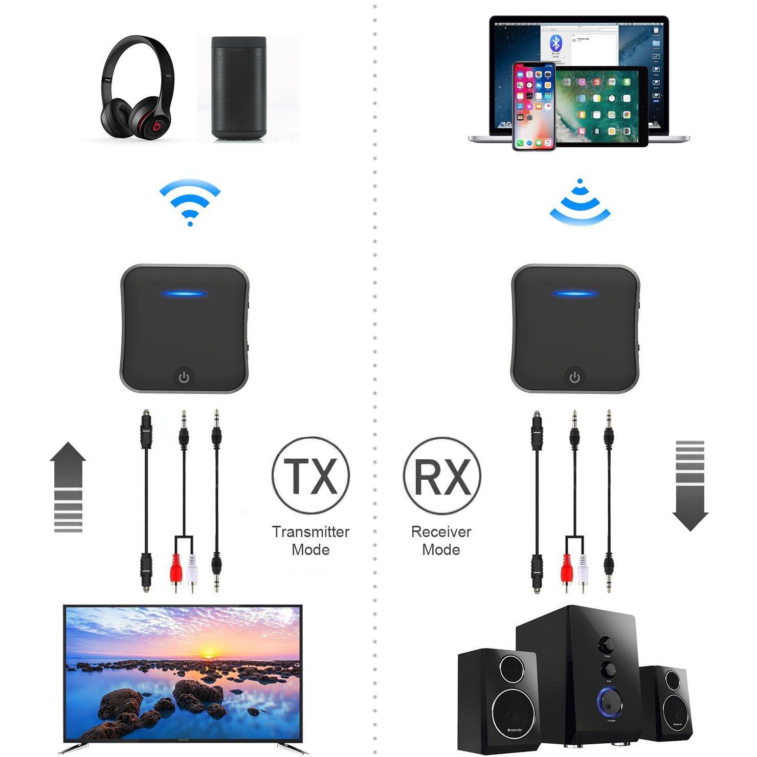Connettiti al tuo TV, autoradio o PC con il SONRU Bluetooth 5.0: trasmettitore e ricevitore 2‑in‑1 che accetta ingresso ottico TOSLINK, RCA e ja ...