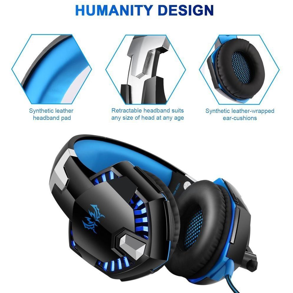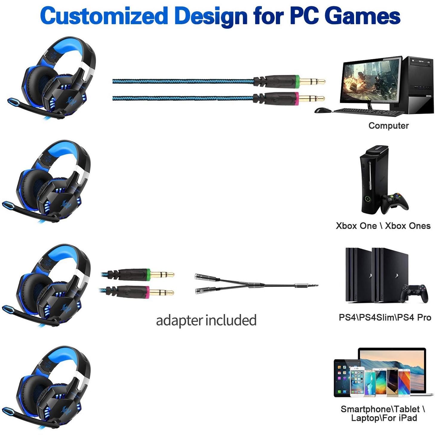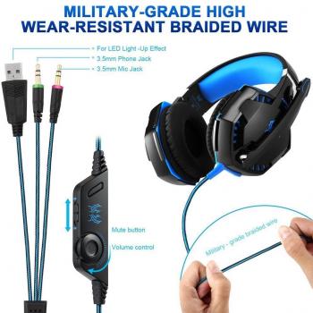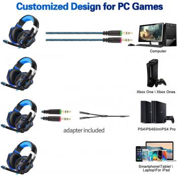 Cuffie da gaming professionali per PS4, PC, computer, cavo da 3,5 mm, microfono stereo con cancellazione del rumore e controllo del volume, design ergonomico, peso leggero (blu)